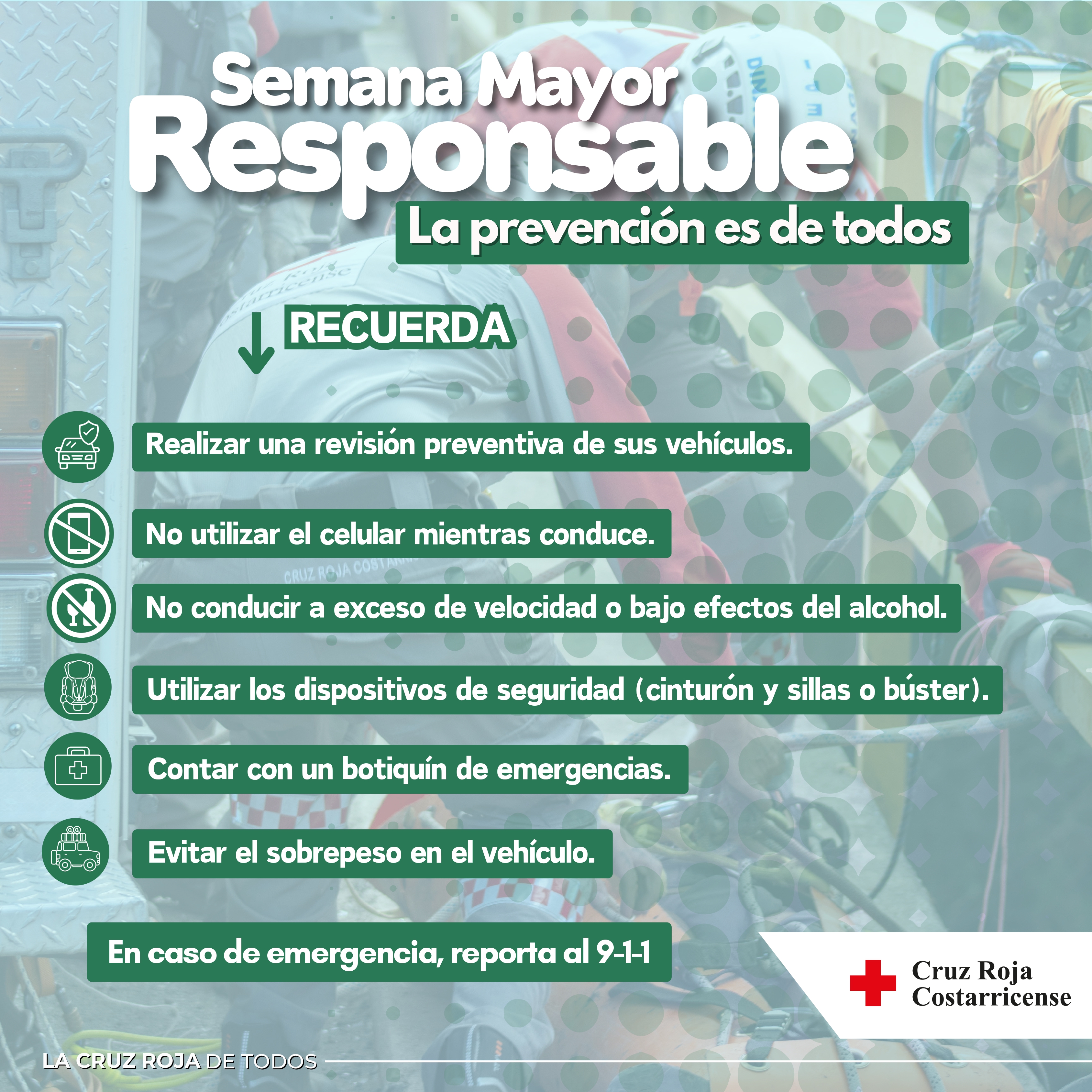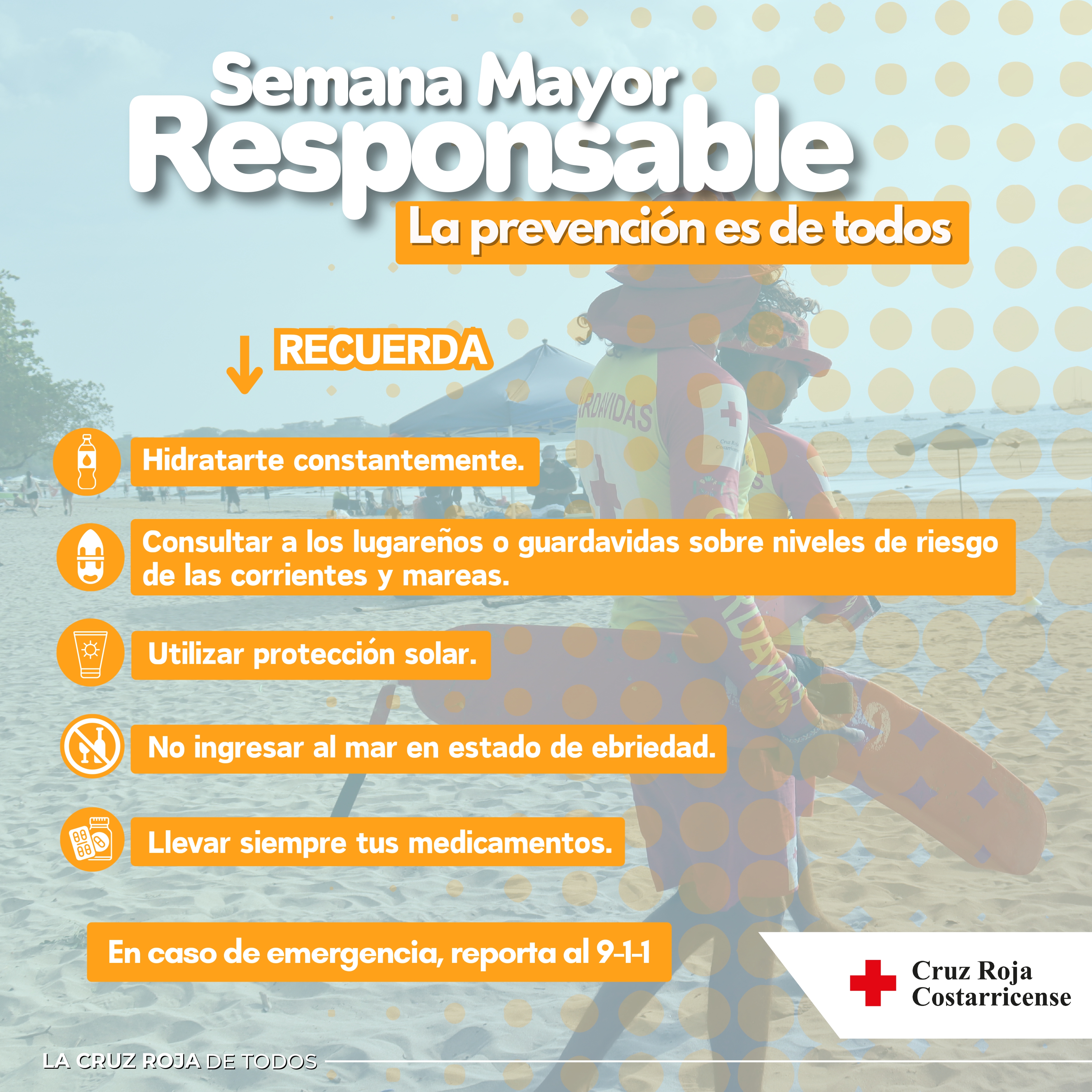 Ante este panorama, la Cruz Roja Costarricense hace un llamado a la población a asumir conductas responsables: